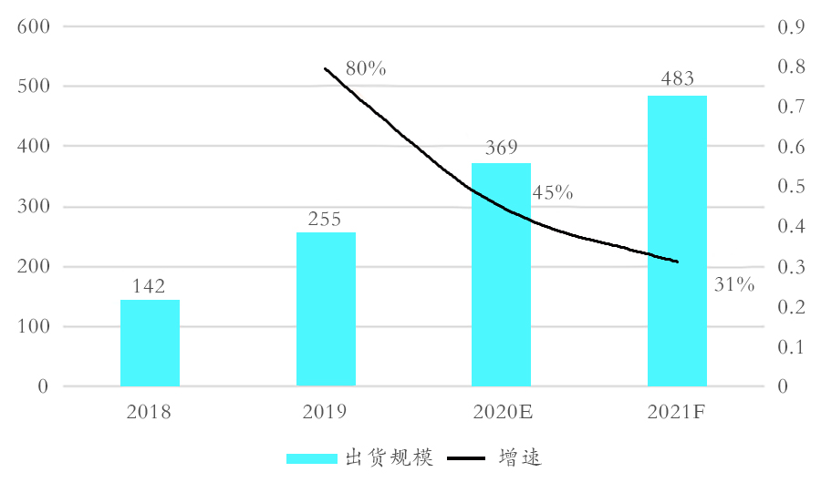 2018-2021年中國電競顯示器市場(chǎng)出貨規模及同比變化趨勢(單位:萬(wàn)臺,%) 數據來(lái)源:Sigmaintell